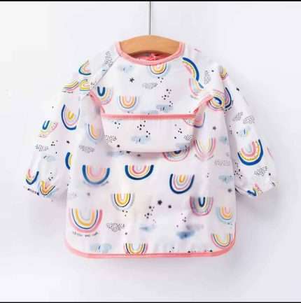 پیشبند لباسی ضد آب طرح رنگین‌کمان محافظت کامل، سبک و دوست‌داشتنی برای کودکان هنگام غذا خوردن و بازی پیشبند لباسی